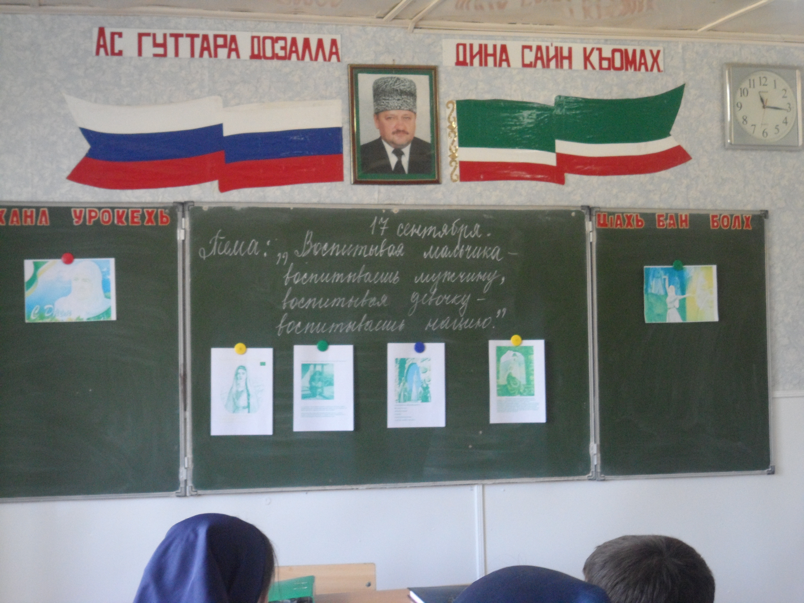 15.09.2015С целью формирования положительных ценностных ориентаций, содействие сохранению и развитию уважительного отношения к женщинам-матерям на основе обычаев и традиций чеченского народа в МБОУ «СОШ с.Дачу-Борзой» с 14 по 17 сентября проведены мероприятия, посвященные Дню чеченской женщины Классные часы, беседы на темы: 1) «Чеченская женщина»; 2) «Воспитывая мальчика – воспитываешь мужчину, воспитывая девочку -воспитываешь нацию3) «Сан хьоме Нана». 15 сентября 2015 года, был проведен конкурс чтецов, посвященный ко дню чеченской женщины. В этот день хочется говорить о самых важных, самых наших любимых – это наши мамы! С этой задачей справились все участники конкурса. Они рассказывали самые красивые стихи, а главное от души. А в 1 «А» классе проведен 14 сентября конкурс рисунков : «Наши мамы»
